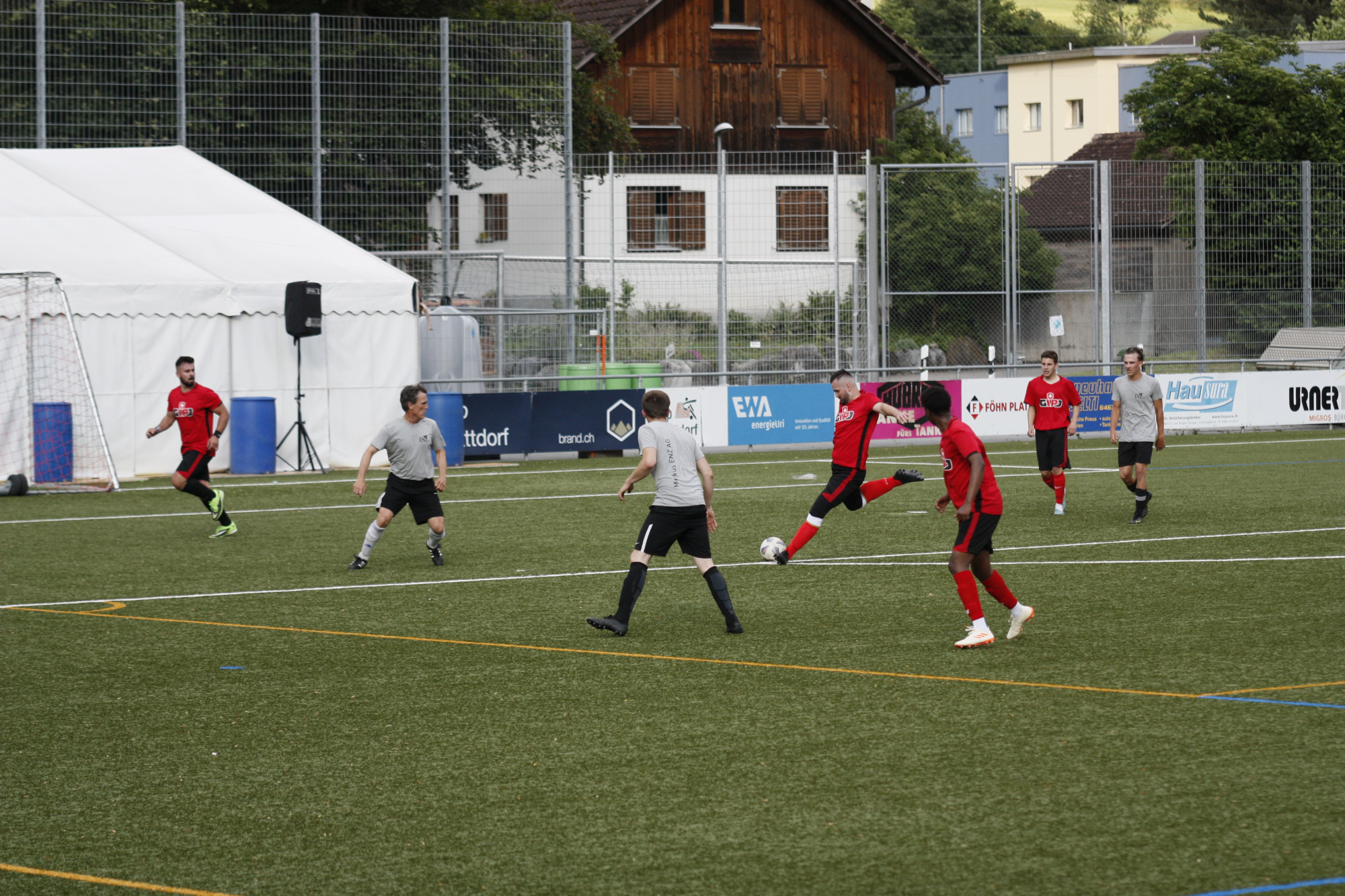 Das Dorf- und Grümpelturnier des FC Schattdorf lockte auch dieses Jahr zahlreiche Sportbegeisterte auf den Sportplatz Grüner Wald. Zu den über 60 Teams mit ihren rund 500 Kickern gesellten sich über das ganze Wochenende hinweg fussballbegeisterte Gäste hinzu. Die Zuschauerinnen und Zuschauer sahen spannende und über weite Strecken faire Grümpelturnierpartien und mit dem Turniergewinn der Truppe „Mergimi“ in der Kategorie Herren einen würdigen Sieger. Freude und Spass war den Spielerinnen und Spielern der Kategorien Piccolo, Schüler S1 und Schüler S2 anzusehen. Die jungen Kicker wussten mit fairen und hochstehenden Fussballpartien zu begeistern. Dabei behielten das Team „Tortellini“ in der Kategorie Piccolo, die Gruppe „Washed Players“ in der Kategorie Schüler S1 sowie die Mannschaft "Nid grad ganz guet, aber ganz guet" in der Kategorie Schüler S2 das bessere Ende für sich. Interessante Aufeinandertreffen gab es bereits zu Beginn des Grümpi-Wochenendes zu sehen. In einem spannenden Dorfturnier-Final siegte erneut die „PORR SUISSE AG“ gegen den Finalteilnehmer „Marty Party“.