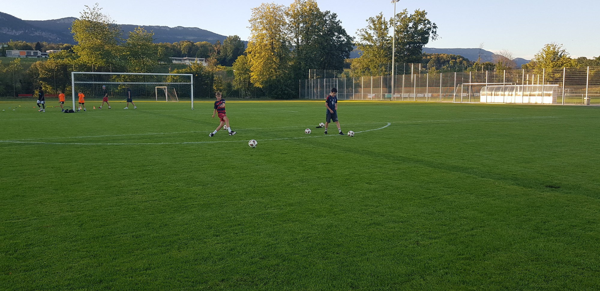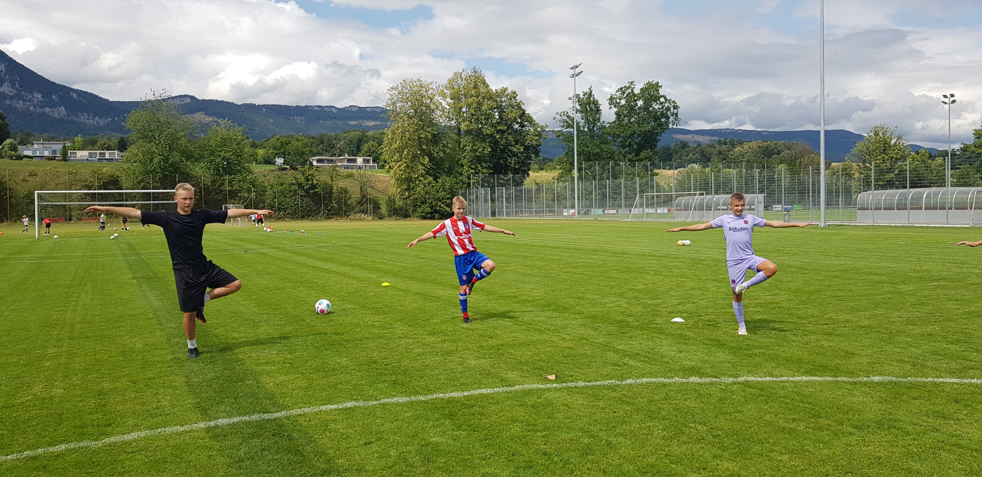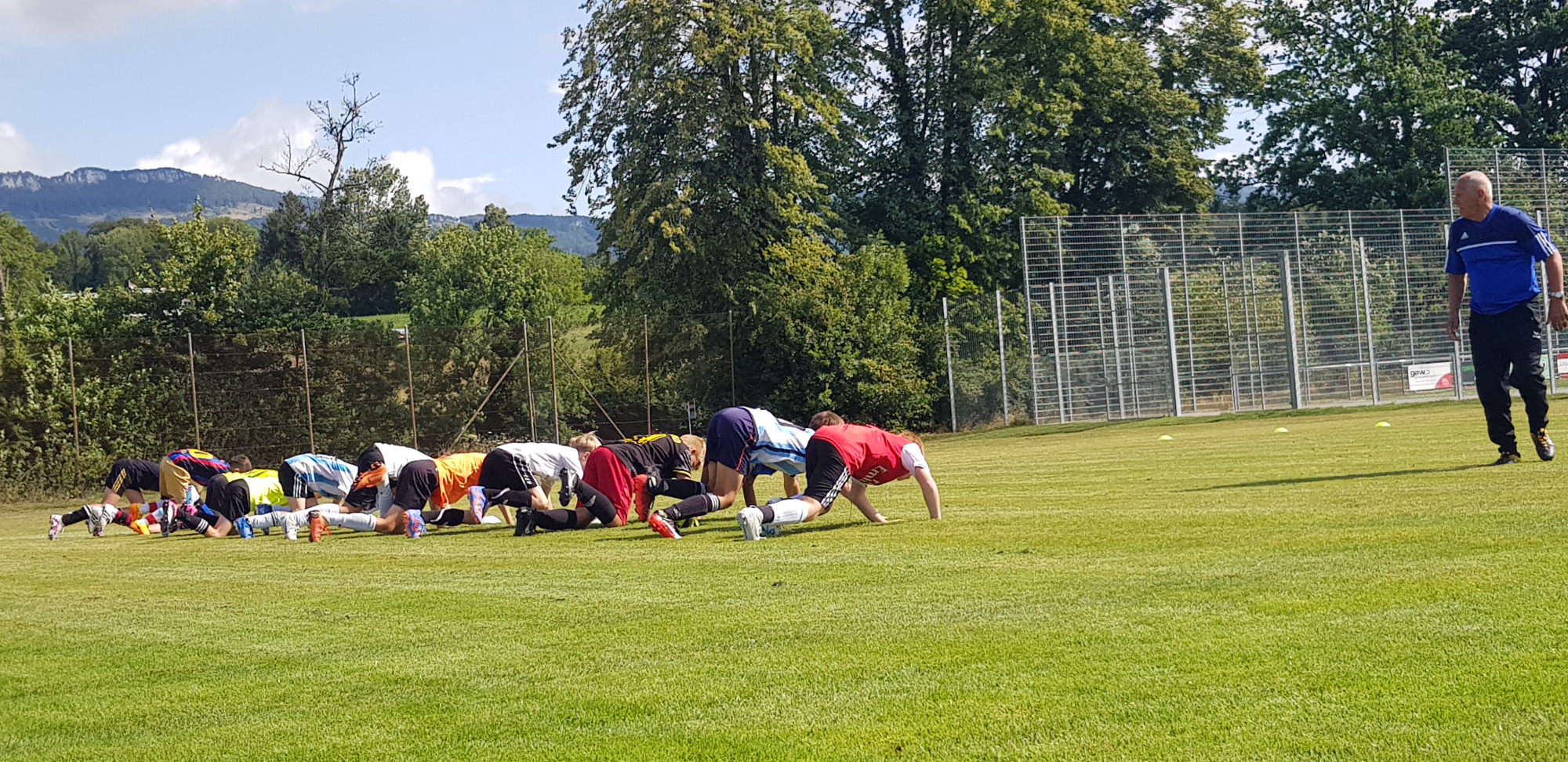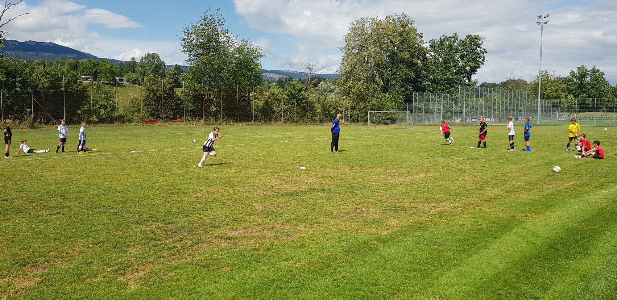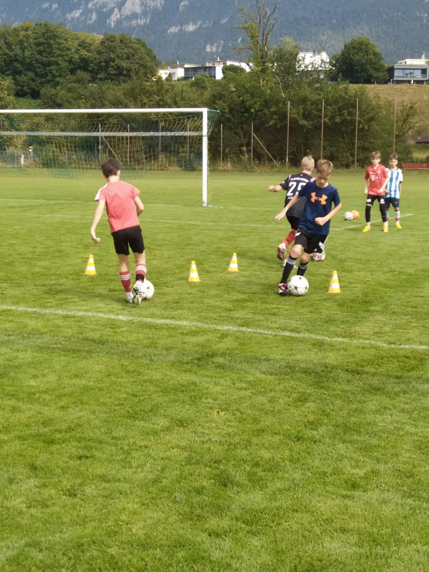 Für die Woche waren insgesamt 7 Trainings und ein Turnier (Freitag) geplant. Bei perfekten (Trainings-) Temperaturen wurde vormittags in drei Gruppen trainiert, wobei eine Gruppe durch die Torhüter gebildet wurde. Nachmittags waren dann zwei (grössere) Trainingsgruppen im Einsatz. Auf dem Platz wurde vor allem an der Technik gefeilt, viele Spielformen absolviert und die eine oder andere Spassübung durfte auch nicht fehlen. Vom Jüngsten (Jahrgang 2013) bis zum Ältesten (Jahrgang 2007) sah man der ganzen Truppe an, dass sie mit Spass, Motivation und Einsatz dabei waren. Bei der älteren Trainingsgruppe durfte natürlich auch das «Mentalitätstraining» beim Schleifer H. S. vom Schattdorfer Hausberg nicht fehlen. Leider konnten zwei Teilnehmer das Lager nicht wie gewünscht beenden. Ein Bienenstich am Fuss wie auch eine starke Knochenprellung liessen weitere Trainings nicht zu.