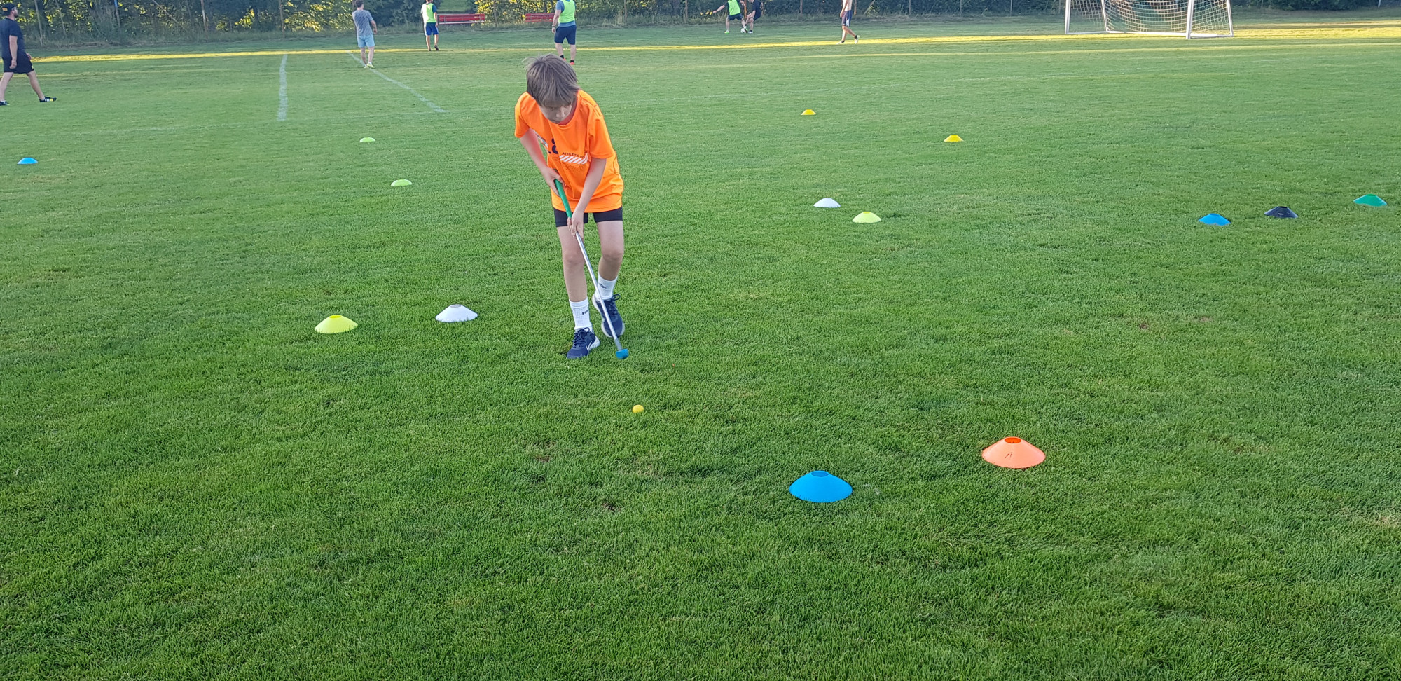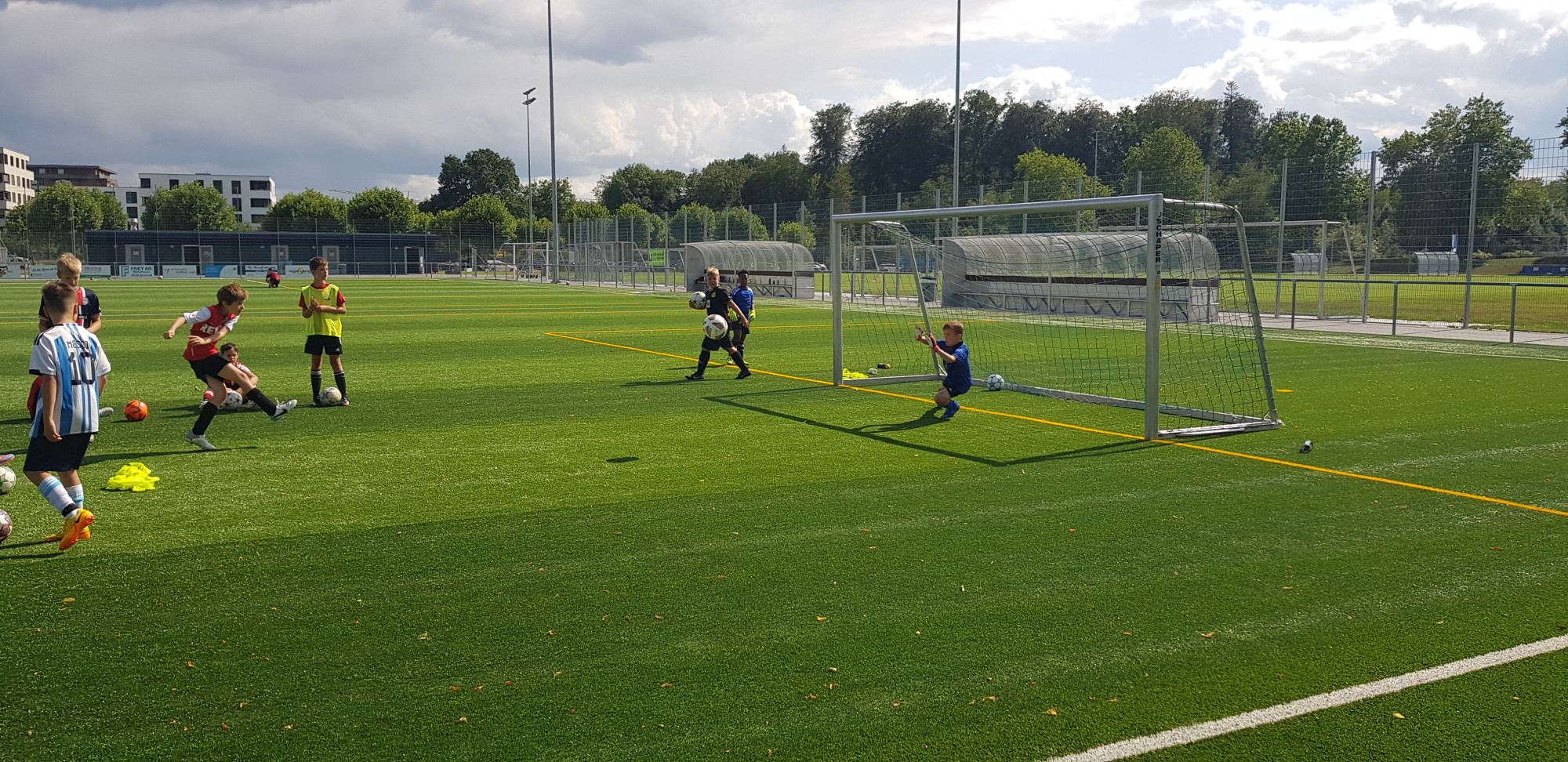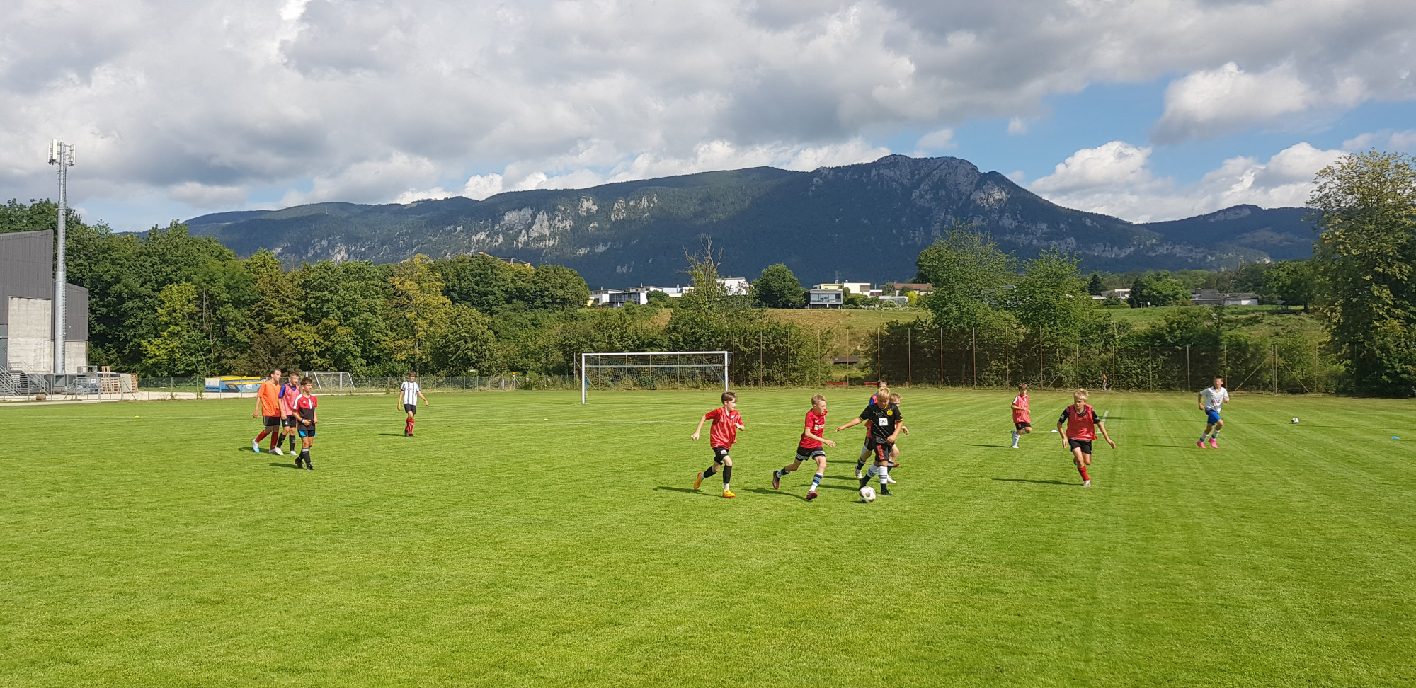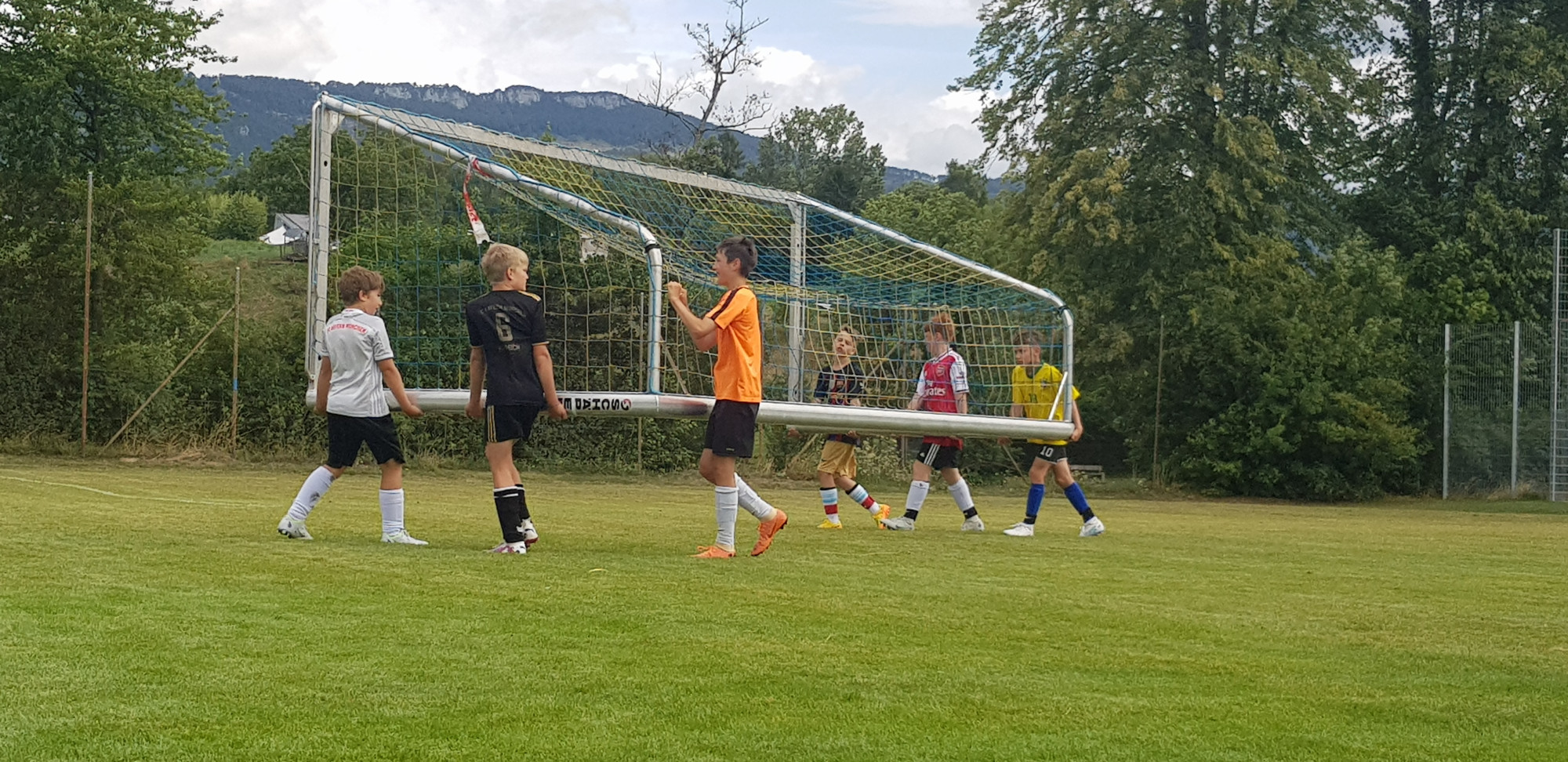 Für die Woche waren insgesamt 7 Trainings und ein Turnier (Freitag) geplant. Bei perfekten (Trainings-) Temperaturen wurde vormittags in drei Gruppen trainiert, wobei eine Gruppe durch die Torhüter gebildet wurde. Nachmittags waren dann zwei (grössere) Trainingsgruppen im Einsatz. Auf dem Platz wurde vor allem an der Technik gefeilt, viele Spielformen absolviert und die eine oder andere Spassübung durfte auch nicht fehlen. Vom Jüngsten (Jahrgang 2013) bis zum Ältesten (Jahrgang 2007) sah man der ganzen Truppe an, dass sie mit Spass, Motivation und Einsatz dabei waren. Bei der älteren Trainingsgruppe durfte natürlich auch das «Mentalitätstraining» beim Schleifer H. S. vom Schattdorfer Hausberg nicht fehlen. Leider konnten zwei Teilnehmer das Lager nicht wie gewünscht beenden. Ein Bienenstich am Fuss wie auch eine starke Knochenprellung liessen weitere Trainings nicht zu.