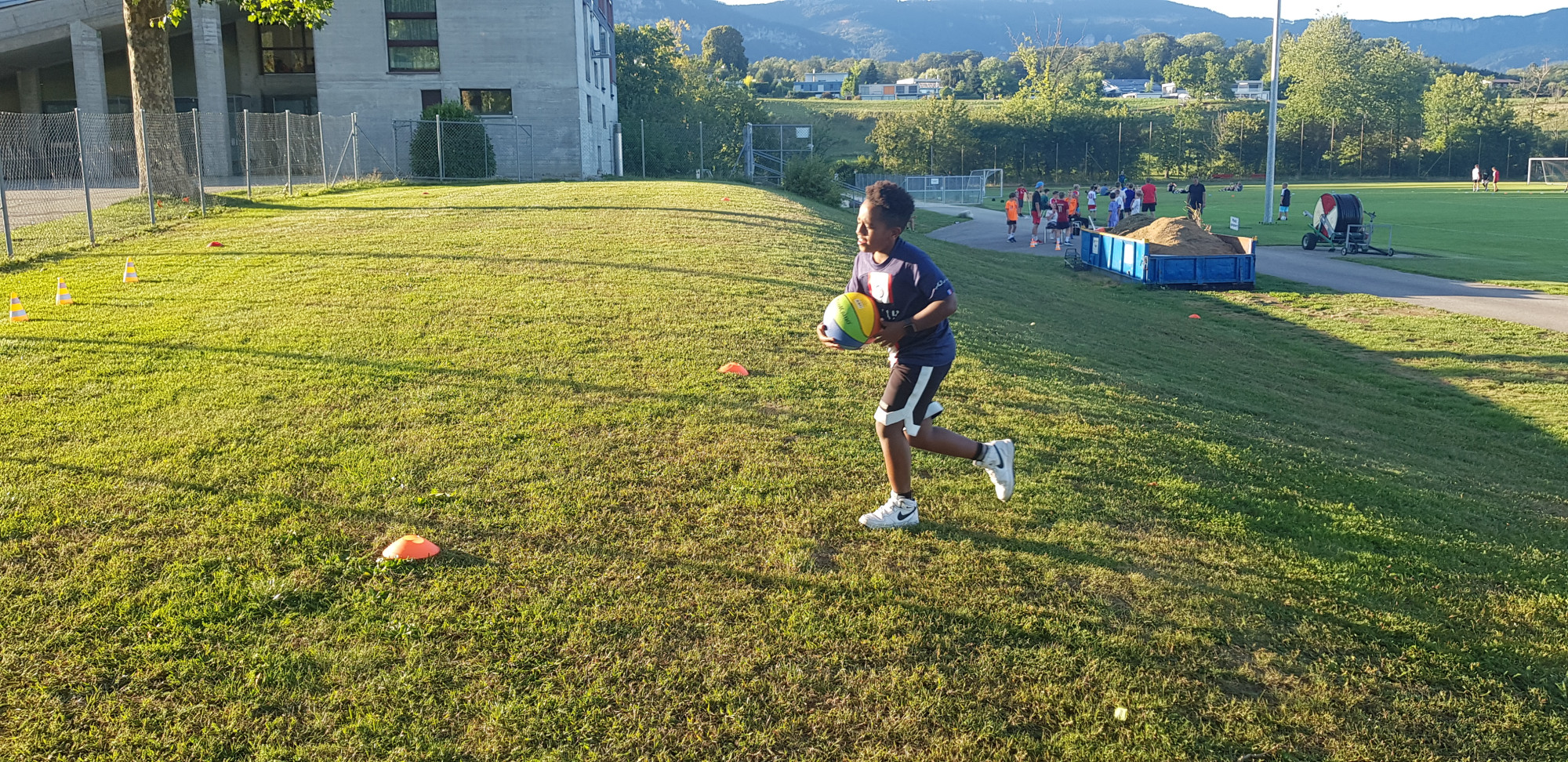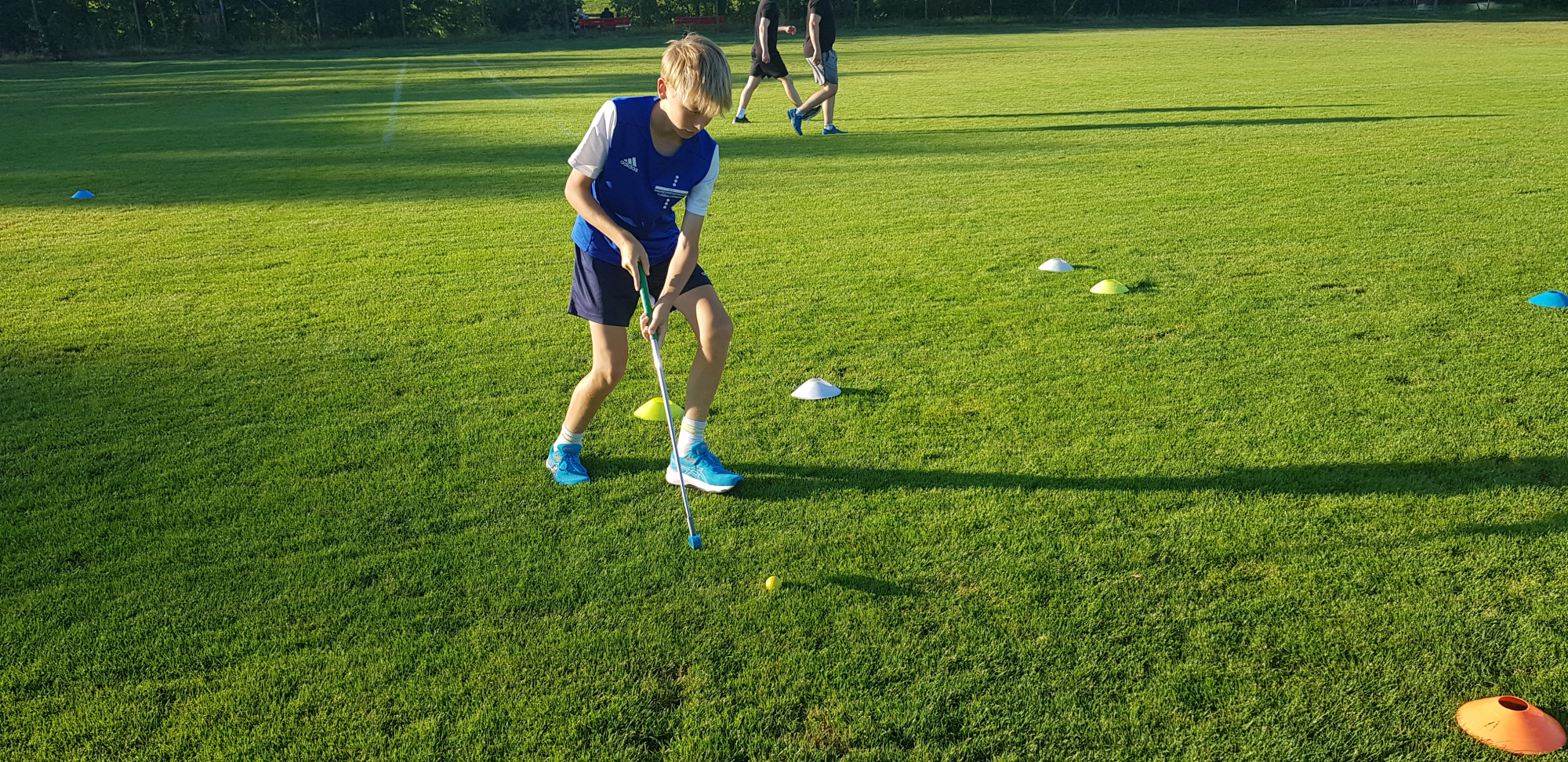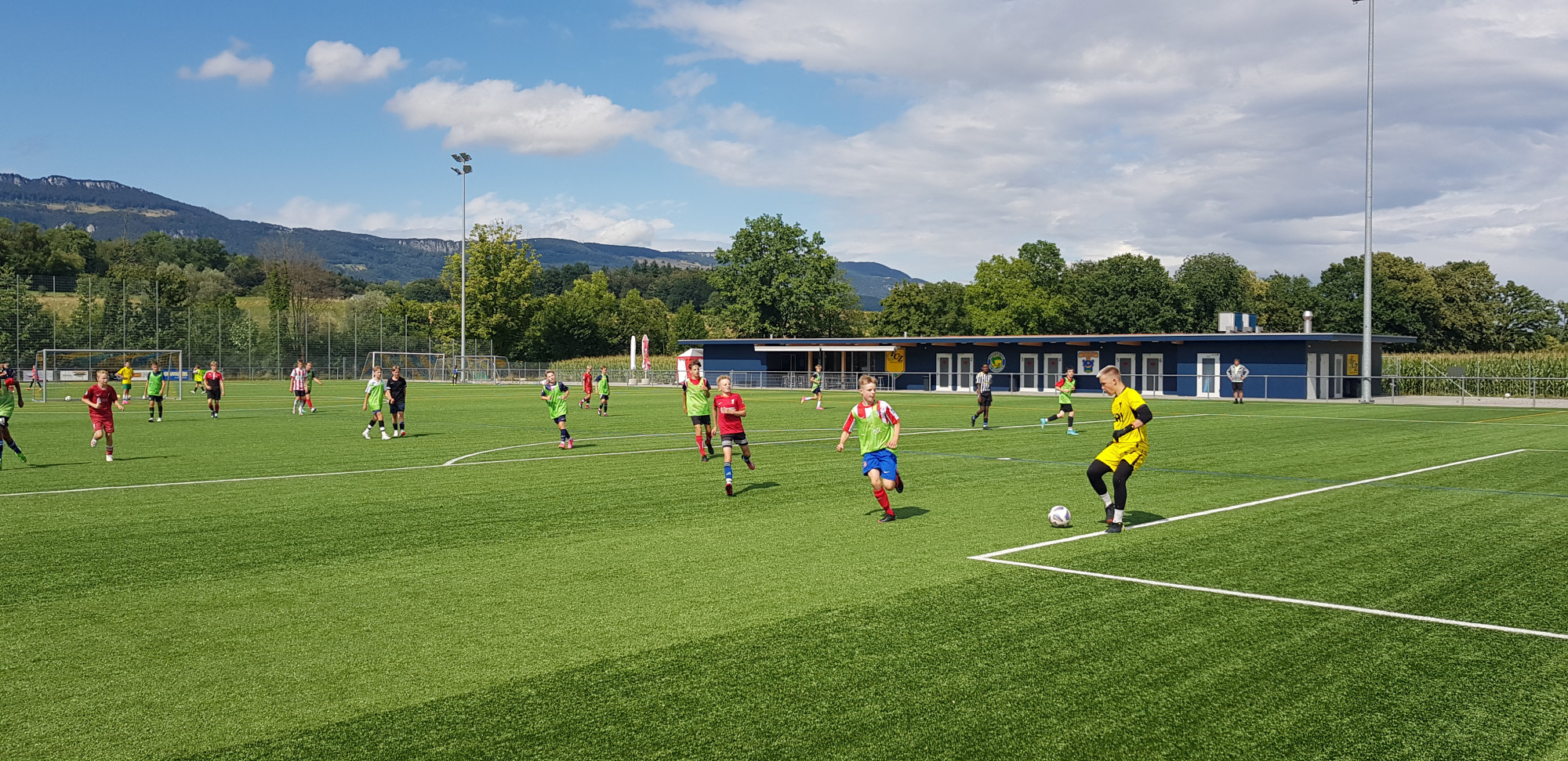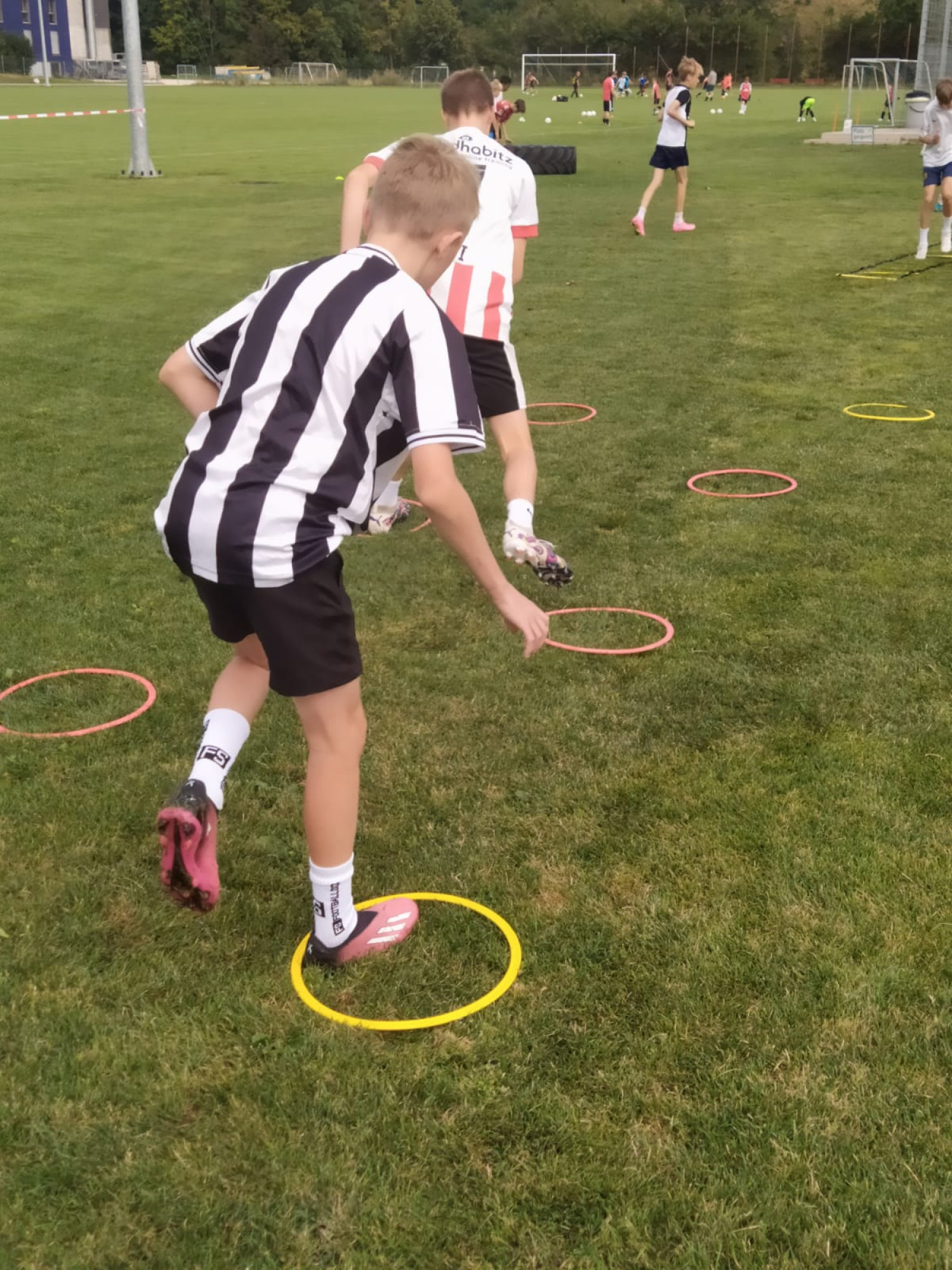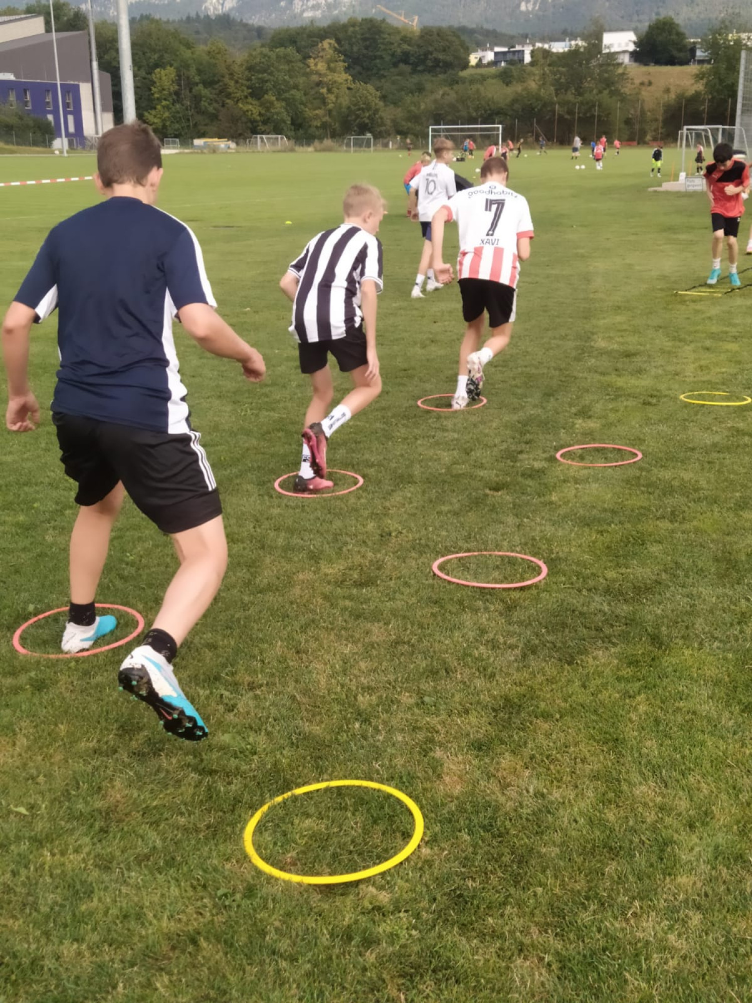 Für die Woche waren insgesamt 7 Trainings und ein Turnier (Freitag) geplant. Bei perfekten (Trainings-) Temperaturen wurde vormittags in drei Gruppen trainiert, wobei eine Gruppe durch die Torhüter gebildet wurde. Nachmittags waren dann zwei (grössere) Trainingsgruppen im Einsatz. Auf dem Platz wurde vor allem an der Technik gefeilt, viele Spielformen absolviert und die eine oder andere Spassübung durfte auch nicht fehlen. Vom Jüngsten (Jahrgang 2013) bis zum Ältesten (Jahrgang 2007) sah man der ganzen Truppe an, dass sie mit Spass, Motivation und Einsatz dabei waren. Bei der älteren Trainingsgruppe durfte natürlich auch das «Mentalitätstraining» beim Schleifer H. S. vom Schattdorfer Hausberg nicht fehlen. Leider konnten zwei Teilnehmer das Lager nicht wie gewünscht beenden. Ein Bienenstich am Fuss wie auch eine starke Knochenprellung liessen weitere Trainings nicht zu.