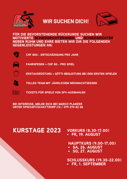 Wir suchen motivierte Schiedsrichter. Weitere Informationen findest du im Flyer.