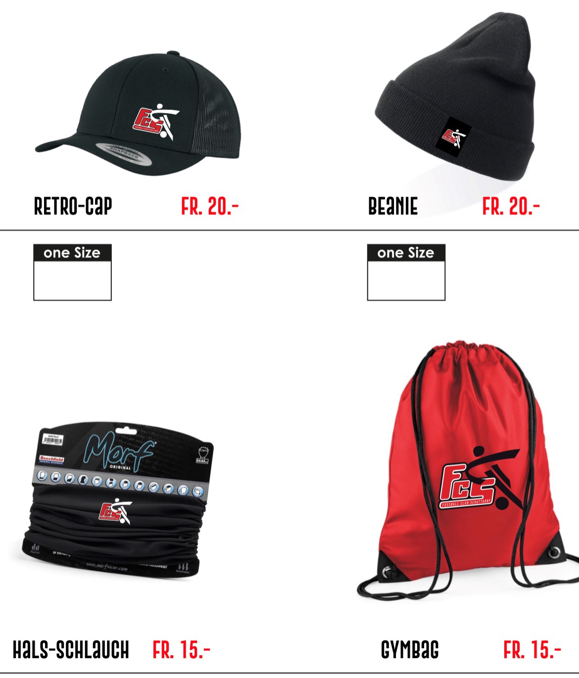 Hast du noch kein Weihnachtsgeschenk? Und ist die zu beschenkende Person FC Schattdorf Fan? Dann haben wir etwas für dich. Der FC Schattdorf bietet neu Caps, Beanies, Hals-Schläche, Gymbags und Duschtücher an - ideal als Weihnachtsgeschenk. Wenn du deine Bestellung bis zum 3. Dezember 2023 aufgibst, kannst du die bestellten Fanartikel noch vor Weihnachten per Rechnung bei uns abholen. Alle weiteren Informationen findest du im untenstehenden pdf.